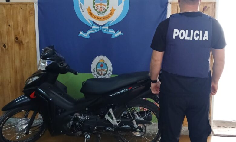 Efectivos de investigaciones de la Comisaría 1ra de Goya, secuestraron en poder de un menor una moto Honda Wave sustraida de Santa Lucía, a fines de Septiembre.