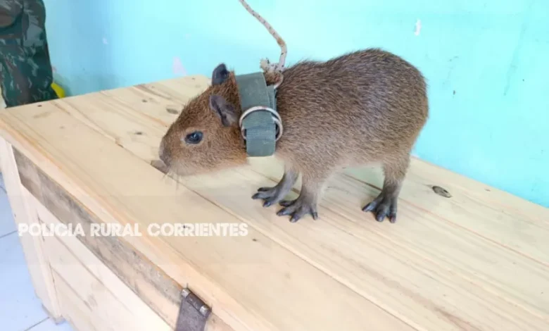 El ejemplar fue hallado desorientado cuando intentaba cruzar las avenidas principales de la ciudad de Ituzaingó. La cría de carpincho llevaba puesto un collar lo que indicaría que estuvo en cautiverio como mascota.